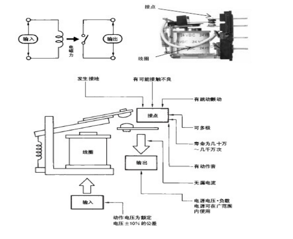 向線圈施加輸入電壓, 使其發(fā)生電磁力, 移動可動鐵片, 從而切換接點。不僅可在控制