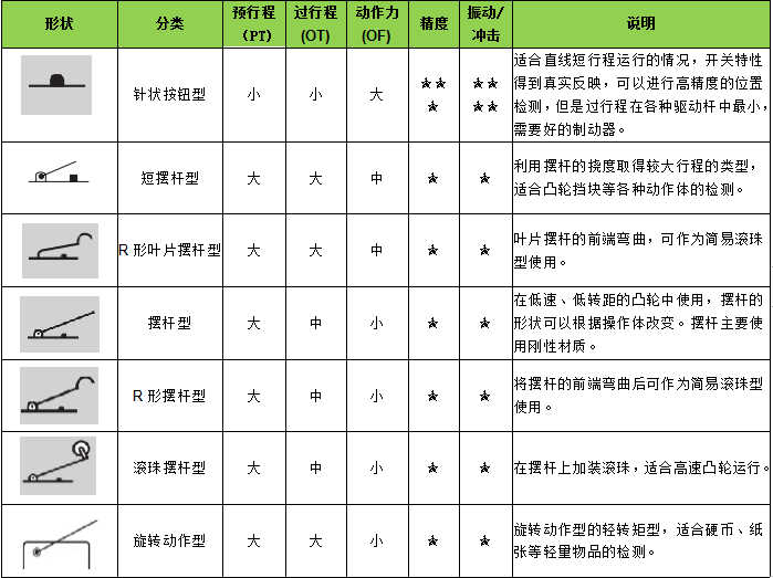 每個(gè)系列產(chǎn)品按照驅(qū)動(dòng)桿、額定值、接觸規(guī)格、端子規(guī)格、動(dòng)作力等分為多種類型,今天就帶大家了解下歐姆龍微動(dòng)開(kāi)關(guān)的驅(qū)動(dòng)桿有哪些?區(qū)別是什么?要如何進(jìn)行選擇?詳情請(qǐng)查看下圖: